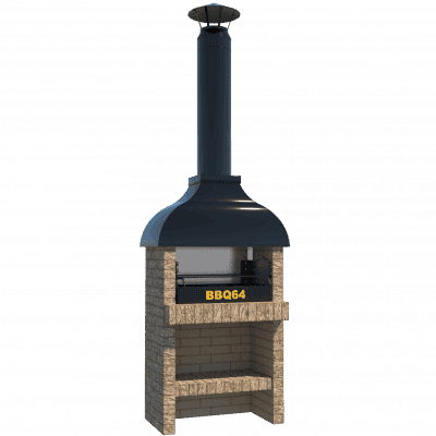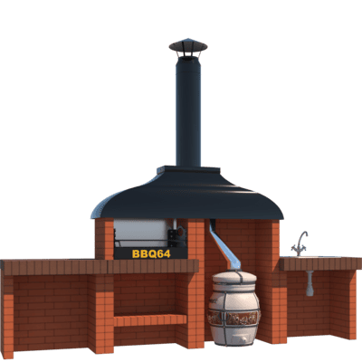 Мангал – это самый популярный элемент печного комплекса барбекю из кирпича, потому что предназначен для приготовления шашлыка и множества других вкусных блюд. Основание и стенки топки выполнены из красного керамического кирпича. Металлический дымосборник состоит из двух куполов: рабочего толщиной 1,5-2 мм и декоративного с покрытием эмалью. Дымоход выполнен из двустенного сэндвича с утеплением и закачивается оголовком-искрогасителем. Дополнительно возможно установить шибер для регулировки процесса горения. В топку встраивается мангальная вставка с металлом 3 мм, которая футерована шамотным кирпичом и имеет несколько уровней рамки для шампуров. Задняя стенка защищена нержавеющим фронтальным экраном-отражателем для избежания перегрева задней стенки топки. Таким образом, мангал можно топить не только углем, но и дровами.